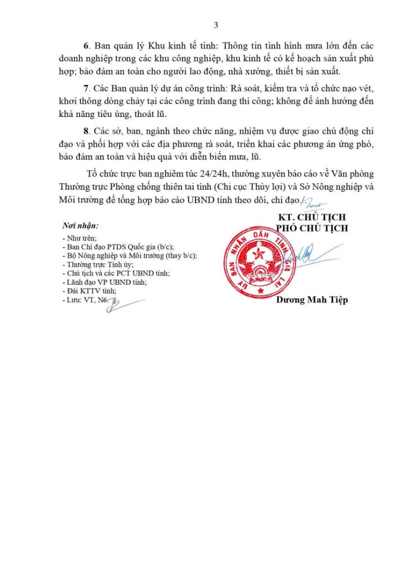 CÔNG ĐIỆN số 10 ngày 06/11/2025 của UBND tỉnh Về việc v tập trung triển khai các biện pháp khẩn cấp ứng phó với bão số 13