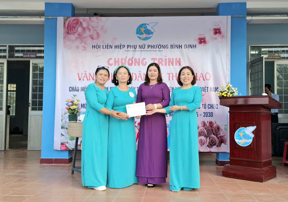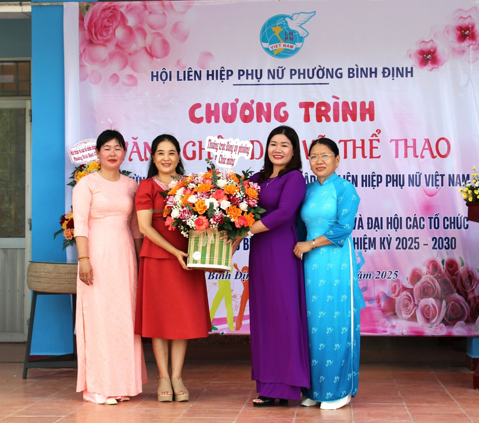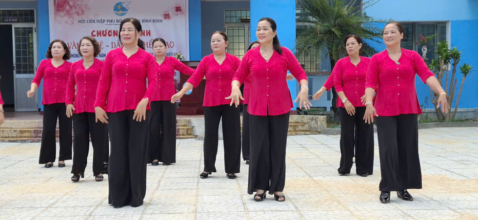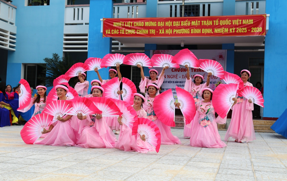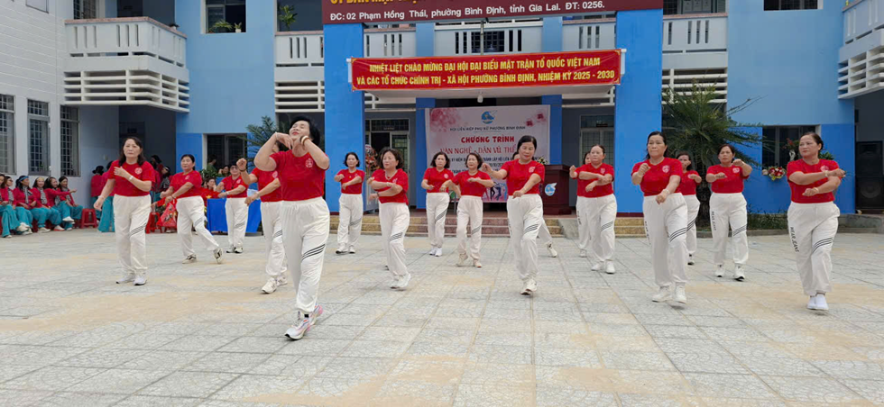 Trong không khí vui tươi, sôi nổi, các chi hội phụ nữ đã mang đến nhiều tiết mục văn nghệ và dân vũ đặc sắc, thể hiện sự khỏe khoắn, duyên dáng và tinh thần lạc quan của người phụ nữ phường Bình Định.