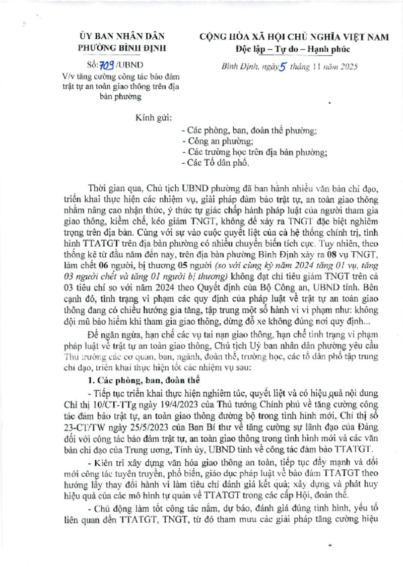| Số hiệu | 709/UBND | Cơ quan ban hành | UBND phường Bình Định |